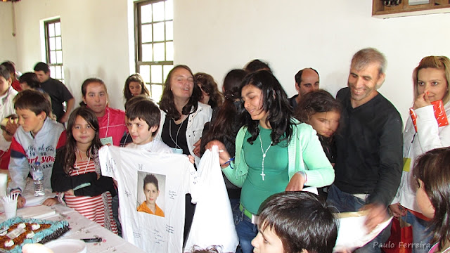 Foi entregue uma t-shirt a cada um como pequena lembrança e um terço a todos os presentes.